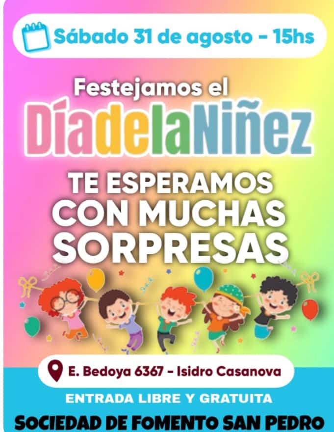 El sábado 31 de agosto, a partir de las 15 horas, en la Sociedad de Fomento San Pedro, en La Matanza, el comedor “Estrellita” realizará un festejo por el Día del Niño. Es por ese motivo que piden ayuda de vecinos y empresarios ya que no cuentan con tantos recursos.